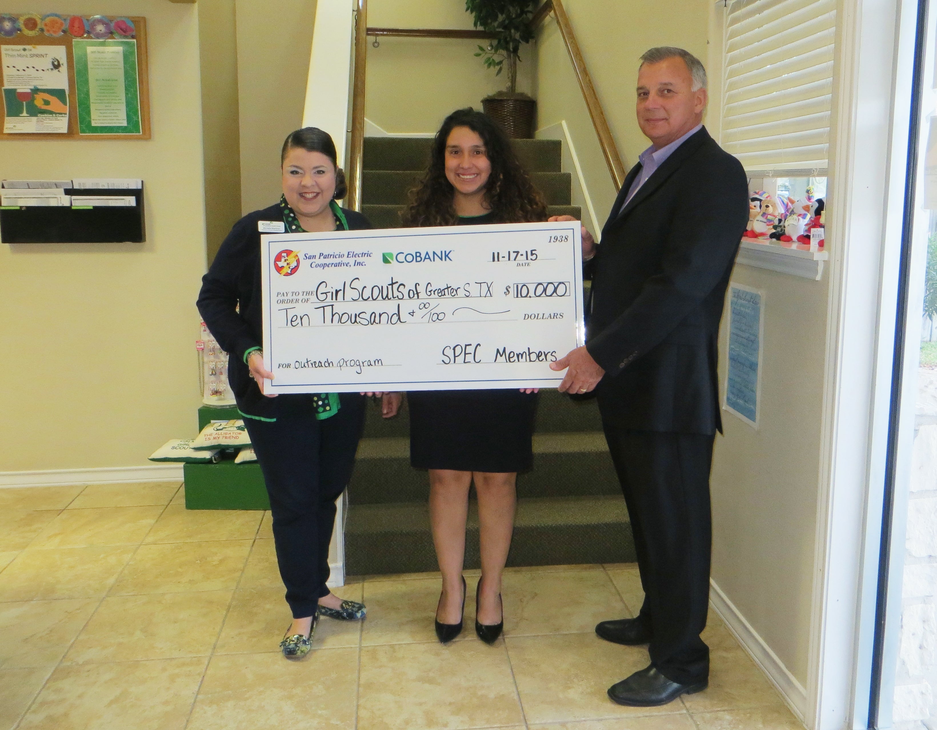 San Patricio Electric Cooperative, in partnership with CoBank, presented a $10,000 donation to the Girl Scouts of Greater South Texas on November 17.