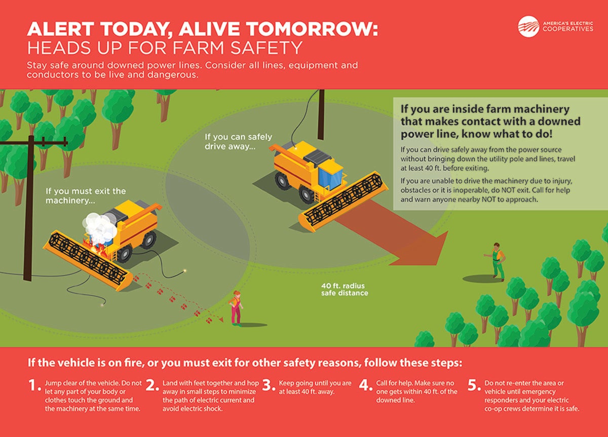 Despite these advances, however, safety risks still remain. Because equipment with auto-guidance systems requires less focus on steering, some drivers may not be as alert to navigation issues. Awareness is key when it comes to safety around electricity. It’s important to remember that farm machinery is particularly vulnerable to hitting power lines or poles because of its large size, height and extensions. To reduce the risk of accidents, be aware of the location of power lines and plan a route that allows you to operate the equipment safely.